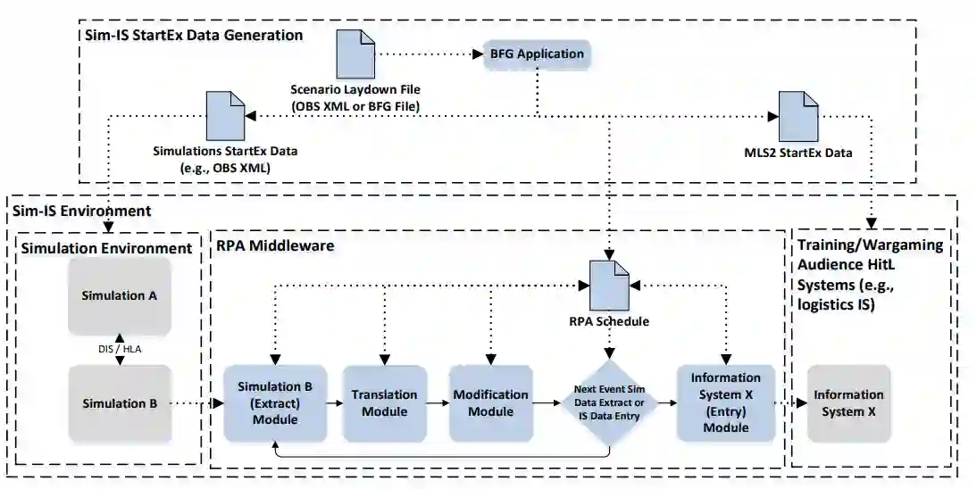 尽管最近在美国防部参谋培训和兵棋推演模拟中对后勤因素的表现有所进步,但后勤信息系统(IS)的表现仍然不足。许多指挥与控制(C2)系统可通过通用协议(如 OTH-Gold)与仿真集成,但许多后勤信息系统与仿真-信息系统(sim-IS)的集成则需要人力密集的 "人在回路"(HitL)过程。在已实现自动仿真-IS 集成的地方,通常无法仿真重要的社会技术系统(STS)动态,如信息延迟和人为错误,从而使决策者无法真实地了解物流 C2 的能力。本研究试图通过开发和验证一种通过机器人流程自动化(RPA)进行模拟-信息系统信息交换的新方法,克服传统模拟-信息系统互操作性方法的局限性。RPA 软件通过 IS 现有的图形用户界面支持 IS 信息交换的自动化。这种 "由外而内 "的 IS 集成方法减少了为自动信息交换而对 IS(或模拟)进行工程更改的需要。除了验证基于 RPA 的模拟-IS 集成方法的潜力外,本研究还提出了分布式模拟工程和执行过程(DSEEP)覆盖的建议,以指导模拟-IS 环境的工程设计和执行。