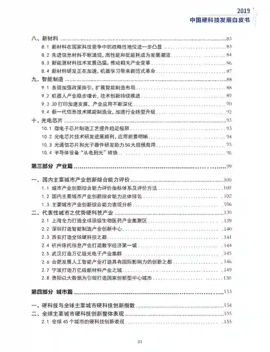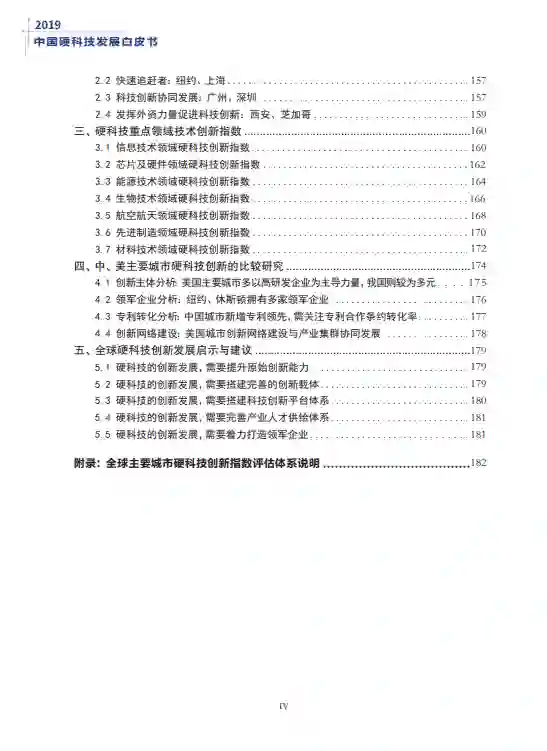 前言: 当前,我国迎来了世界新一轮科技革命与中国转变发展方式的历史性交汇期, 既面临着千载难逢的历史机遇,又面临着差距拉大的严峻挑战。科技作为人类社会 发展的源动力,塑造和影响着全球政治经济格局,持续主导世界变革,成为我国应 对挑战和把握百年发展机遇的必然选择。以史为鉴,真正能够推动人类社会进步、 改变世界进程、引领人类生活发生根本变革的科技,都是那些需要长期研发投入、 持续积累的高精尖原创技术,对产业的发展具有较强的引领和支撑作用的技术。 2010 年中科院西安光机所米磊博士将这类技术定义为“硬科技”,希望新时期国家 和社会能够重视硬科技、发展硬科技、掌握硬科技。2018 年 12 月 6 日,李克强总理 在国家科技领导小组第一次会议上强调“突出‘硬科技’研究,努力取得更多原创 成果”。2019 年 10 月 16 日,科技部火炬中心组织召开硬科技发展工作座谈会,研 究推进硬科技发展工作。 放眼全球,各国纷纷将目光投向科技,硬科技发展热潮正在全球蓬勃兴起。 2019 年全球在人工智能、生物技术、光电芯片等十大技术领域取得突破性进展,全 球首次合成纯碳 C18 环,为当前计算机芯片突破硅基半导体器件物理极限提供全新 思路 ; 科学家 3D 打印出会“呼吸”的人造器官,未来将造福器官移植患者 ; 世界首 款异构融合类脑芯片问世,通用型人工智能发展迈出重要一步。2019 年全球主要城 市七大硬科技创新综合指数 TOP15 中,中国城市占 8 个席位,占据半壁江山,其中 东京位居第一,北京紧随其后,纽约名列前三。我国科技创新活动活跃度领先全球, 呈现多个行业并发、多种类型并举、多数企业家重视的良好局面。 聚焦中国,硬科技成为衡量和支撑区域产业竞争力的最关键要素,对于城市产 业创新综合实力的作用日益显现,上海全力打造全球顶级生物医药产业集聚区、深 圳打造智能制造产业创新中心、西安打造全球硬科技之都。在 2019 年国内城市产业 创新综合排名中,北京以绝对优势领跑全国,上海和深圳处在第二梯队,作为“硬 科技”概念的发源地,2019 年西安表现亮眼,产业创新综合能力位居全国第四,引 领第三梯队。 展望未来,硬科技作为人类社会发展的核心动力,将驱动人类进入一个全新的 发展阶段,人类生产组织方式、社会组织方式、生活方式将发生重大变化。硬科技 事关人类社会整体进步和人类共同福祉的提升,需要各国以宏大的全球视野和人类 共同的担当,携手构建人类命运共同体。