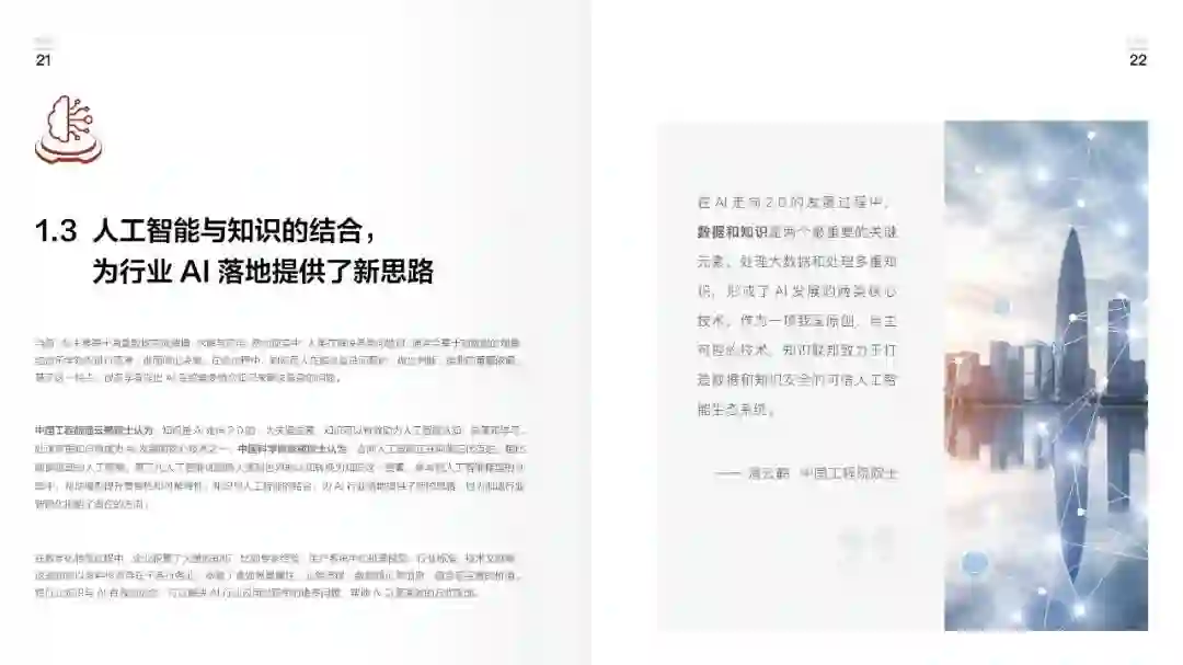 中国人工智能产业发展联盟、华为云和中国信息通信研究院联合编写的《知识计算白皮书》,多维度、多角度、多层次地剖析了知识在企业从数字化到智能化的过程中发挥的重要作用,综合阐述并客观分析了知识计算从知识层、模型层、算子层到行业应用的框架体系,通过能源、工业、医疗、政务、金融等行业的知识计算应用案例阐释知识计算为产业、行业、企业带来的价值,描绘了未来知识计算在技术、产业、标准、生态等方面的发展愿景。