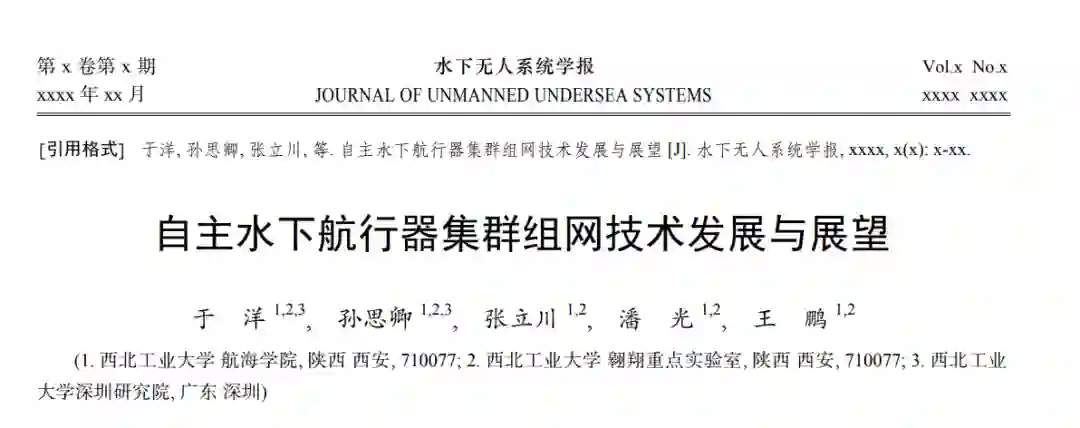 自主水下航行器的应用领域广泛, 可在复杂且危险的水下环境中执行任务, 如海洋资源勘探、水域监测和区域拒止等。然而, 单个航行器搭载传感器的类型和数量有限, 无法满足水下环境任务多样、作业区域广以及作业时间长的需求。因此, 自主水下航行器集群组网技术的发展显得尤为重要。自主水下航行器借助水声通信、协同探测和控制决策等关键技术, 实现自主水下航行器的集群组网, 形成同构或异构集群进行协同作业。通过集群组网, 可以充分发挥不同航行器平台的能力优势, 实现多平台之间的信息共享、任务协同和资源整合, 从而自主完成更复杂的海上作业任务。这种集群化的作业方式不仅提高了任务执行效率, 还可降低作业成本, 并提升海洋领域的探测、监测和应对能力。文中介绍了国内外自主水下航行器集群组网研究现状, 总结了相关关键技术和挑战, 展望了未来发展趋势, 为开展自主水下航行器集群基础理论研究与实践应用研究提供参考。 随着海洋强国战略的不断推进, 我国在海洋资 源开发、海洋生态文明建设以及海洋权益维护等 方面的活动日益增加。现有的各种海洋作业平台 各有其独特优势, 但也存在一定的局限性。例如, 有人大型船只综合作业能力强, 但遇恶劣海况时, 人员风险大且运行成本高昂, 通常为单点作业, 广 域长时同步作业代价大。海面浮标作业网具有广 域作业能力, 但以海表层数据的观测为主, 且随波 逐流, 受控机动能力弱。海底观测网通常使用光 电复合海缆为众多海底原位观测设备和水下接驳 坞等海床基作业设备提供能源和通信链路, 实现 特定海域物理、化学、生物和地质等过程的高分辨 原位实时观测[1] , 建设成本高, 作业区域难以触及 远离陆地的深远海区域。自主水下航行器和水下 滑翔机等水下无人平台已经取得了显著的发展与 广泛的应用[2]。然而, 在执行复杂多样的海洋观探 测任务时, 由于单个平台所搭载的传感器载荷类 型、数量以及能量储备有限, 往往难以满足任务的 多变性需求[3]。 自主水下航行器集群组网技术有效提升了水 下环境中的协同作业与通信能力。组网成员之间 能够自主协同, 高效完成包括海洋勘测、环境监测 及搜寻救援在内的多种复杂任务。节点之间的实 时信息交流, 确保每个成员都能获取到最新的任 务数据和环境信息; 同时, 通过智能算法协调行动, 共同达成预定目标。这种协作能力使得自主水下 航行器集群组网成为海洋探索与利用领域的重要 技术突破。因此, 以各型自主水下航行器为核心 装备, 同时辅助无人艇、浮标、潜标、海底锚系以 及海床基等装备组成异构自主水下航行器集群, 进行体系化协同作业显得尤为重要[4]。目前已有 不少针对同构无人集群的研究, 如水下滑翔机集 群等[5] , 异构集群组网、跨域组网以及形成敏捷、 机动集成系统方面的应用实践处于起步阶段。同 时, 由于复杂海况所带来的不确定性以及模糊性, 水声通信、集群感知及控制决策等多项关键技术 仍亟待突破。文中回顾了近年来自主水下航行器 集群的发展现状及最新研究进展, 并对相关技术 发展趋势进行进一步展望。