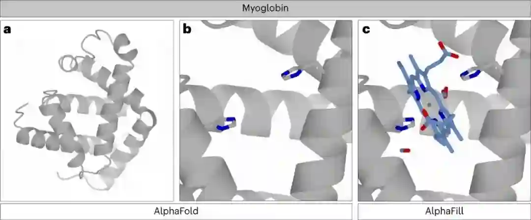 图3:AlphaFold和AlphaFill中的人类肌红蛋白结构。