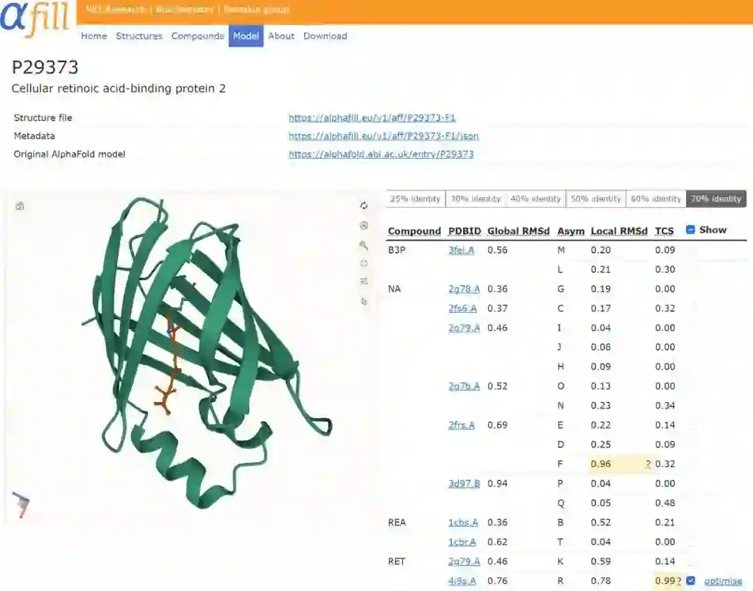 图2:细胞视黄酸结合蛋白2(AF-P29373)的AlphaFill条目页面的截图