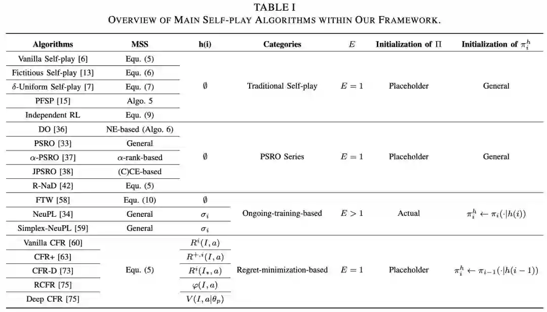我们定义了一个统一的自博弈框架,并将自博弈算法分为四大类:传统自博弈算法、PSRO 系列算法、基于持续训练的系列算法和后悔最小化系列算法。