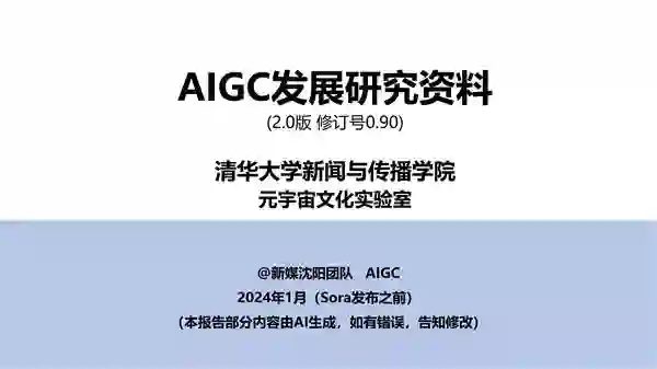 来源:清华大学元宇宙文化实验室 近日 ,由清华大学沈阳教授领衔的清华大学元宇宙文化实验室发布了《AIGC发展研究资料2.0》,在1.0版报告基础上进行深化。 《研究资料2.0》用AI研究AI发展,共计211页,从《技术与演进》《影响与信任》《应用与创新》《安全与评估》《政策监管与全球视角》《前沿探索》六大维度展开,聚焦AIGC的多模态发展、多学科影响、全方位应用以及前沿探索,融汇AI产业实践经验、学术研究探讨与社会理念探索,提供AIGC动态综合指南。 具体内容如下: