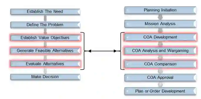 图 9. 通用的自上而下决策制定流程以及与 JOPP 的相似性,突出了哪些 JOPP 步骤将被修改以及如何修改 [13, 64]。