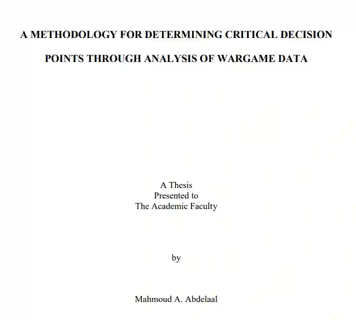 本论文的主要贡献是对兵棋推演数据进行了增强的 COA 分析,从而确定了决策点和启发式方法。其动机是希望提供识别成功 COA 评估指标模式的能力。在这里,利用 CADRE 方法成功地实现了这一目标。通过制定和实验,这项工作帮助创建了考虑内部群组相似性和情景结果统计意义的群组验证指数。此外,这项工作还通过确定元素数量和基本兵棋推演的复杂性比例对联系算法、HSig 指数、决策点识别和启发式方法的选择和性能的影响,进一步拓宽了分析范围。这促使下一个贡献,即在不同分辨率下分析数据的过程,称为 HSig 优化。