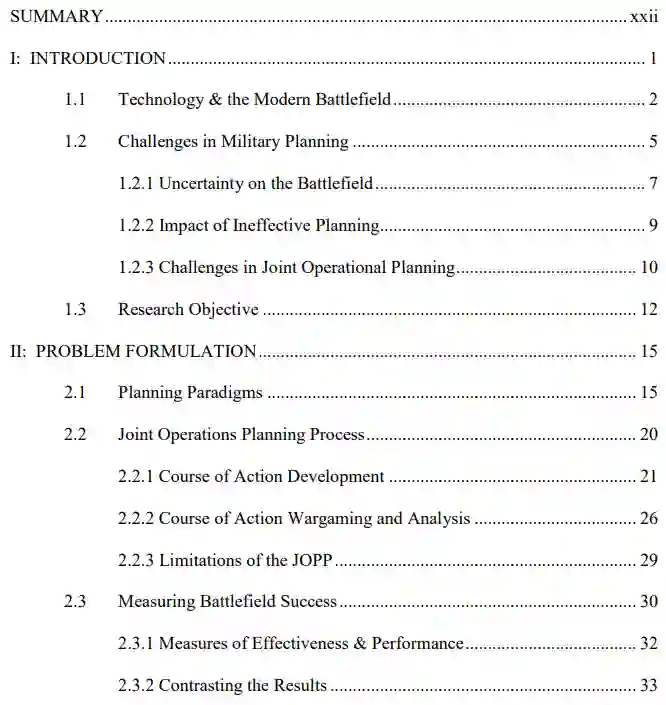 当今的军队利用最新技术,在全球各地参与复杂的冲突和行动。这些不同的行动可能在同一战区同时发生。要在一次交战或多个地点和交战中处理各种行动,需要一支能力超强的部队。然而,由于现代战场上因果关系模糊不清,导致规划困难重重,无法最有效地利用这种能力。