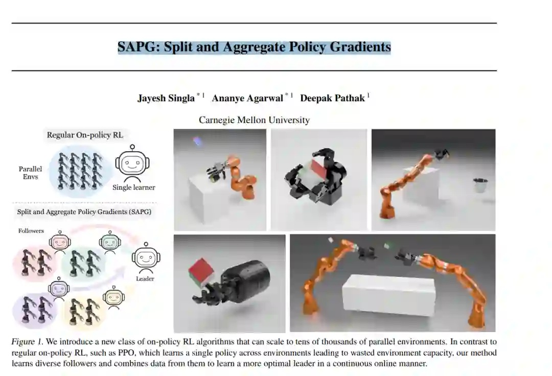 尽管极度样本效率低下,但基于策略的强化学习(即策略梯度)已成为解决决策问题的基本工具。随着基于GPU的模拟技术的最新进展,收集大量用于强化学习训练的数据的能力呈指数级增长。然而,我们展示了当前的强化学习方法(例如PPO)在并行环境的利用方面存在瓶颈,其性能在达到一定点后会饱和。为了解决这个问题,我们提出了一种新的基于策略的强化学习算法,能够通过将大规模环境分块并通过重要性采样将它们融合回去,来有效利用这些环境。我们称这种算法为SAPG。SAPG在各种具有挑战性的环境中表现出显著更高的性能,而在这些环境中,传统的PPO和其他强基线方法未能达到高性能表现。更多信息请访问:https://sapg-rl.github.io。