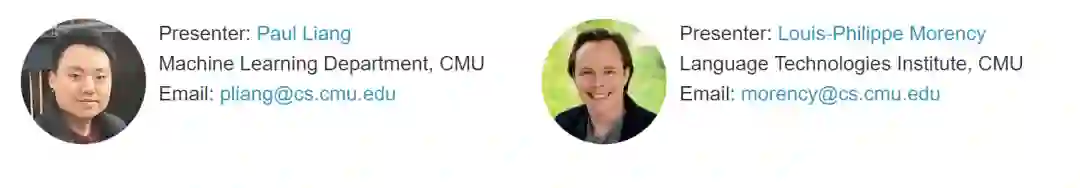 ICML 2023 是第四十届国际机器学习会议,将于 2023 年 7 月 23 日至 29 日在美国夏威夷举行。ICML 共收到 6538 份投稿,其中 1827 份被接收,接收率约为 27.9%。作为对比,去年共收到 5630 投稿,接收 1117 篇 short oral,118 篇 long oral,录用率为 21.94%。ICML(International Conference on Machine Learning,国际机器学习大会)为国际机器学习学会主办的国际会议,被公认是人工智能、机器学习领域最顶级的国际会议之一。 来自卡内基梅隆大学 Paul Liang和 Louis-Philippe Morency在ICML 2023教程《多模态机器学习》讲解多模态机器学习最新进展,非常值得关注!