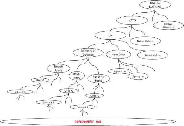 图3所示。展开部署和使用自主武器系统的组织复杂性。