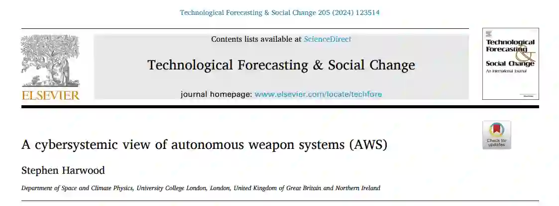 自主武器系统(AWS)也许是最具争议的技术形式之一。然而,自主武器系统的概念并不容易界定,因为它与武器的区别在于自主系统。这就需要采用系统方法来理解什么是自主武器系统。
