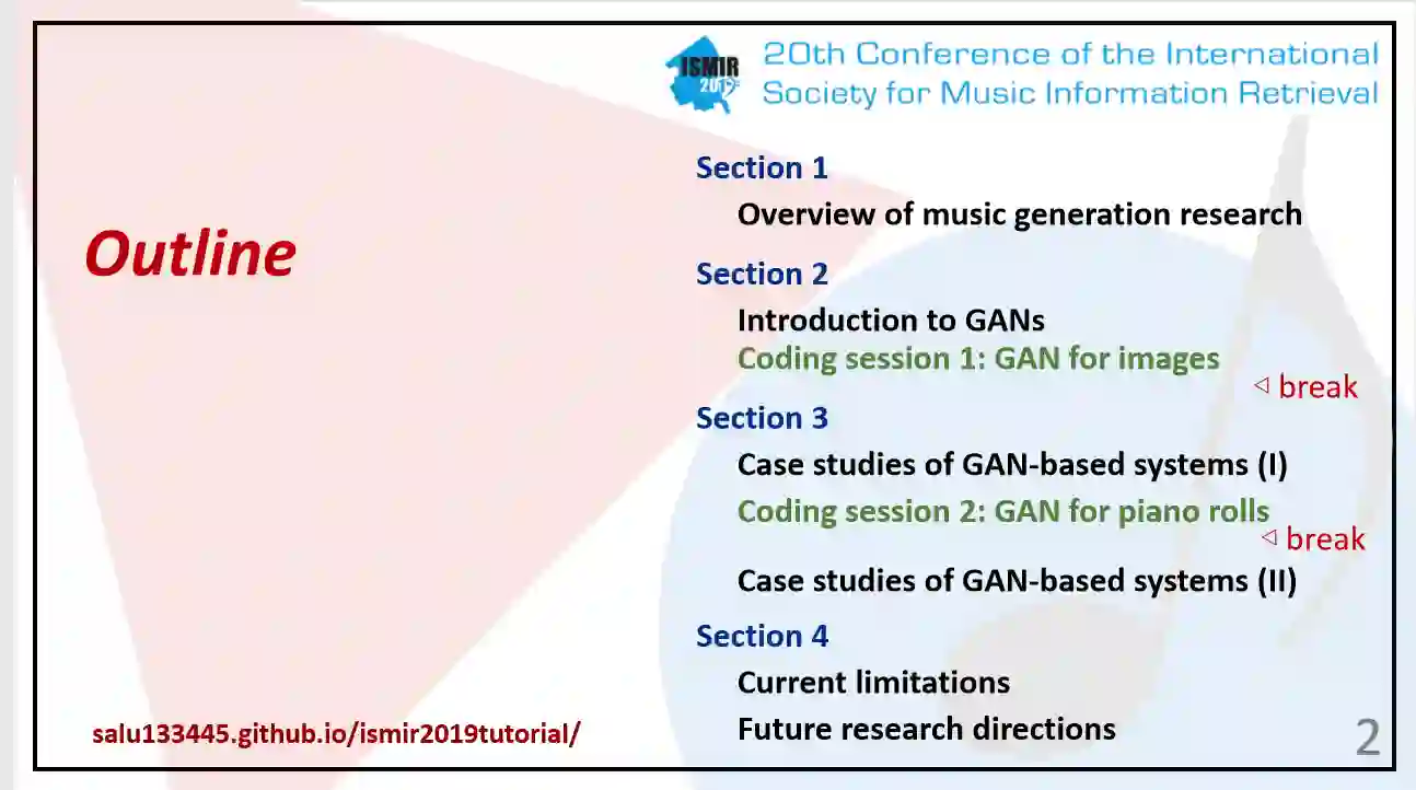 报告摘要:本教程旨在概述生成对抗网络(GAN)及其在生成音乐中的使用。教程的格式将包括讲座,示例系统的演示和带有说明性音乐示例的技术成果。