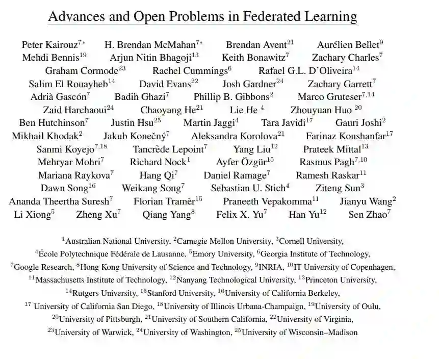 【重磅】联邦学习FL进展与开放问题万字综述论文,58位学者25家机构联合出品,105页pdf438篇文献