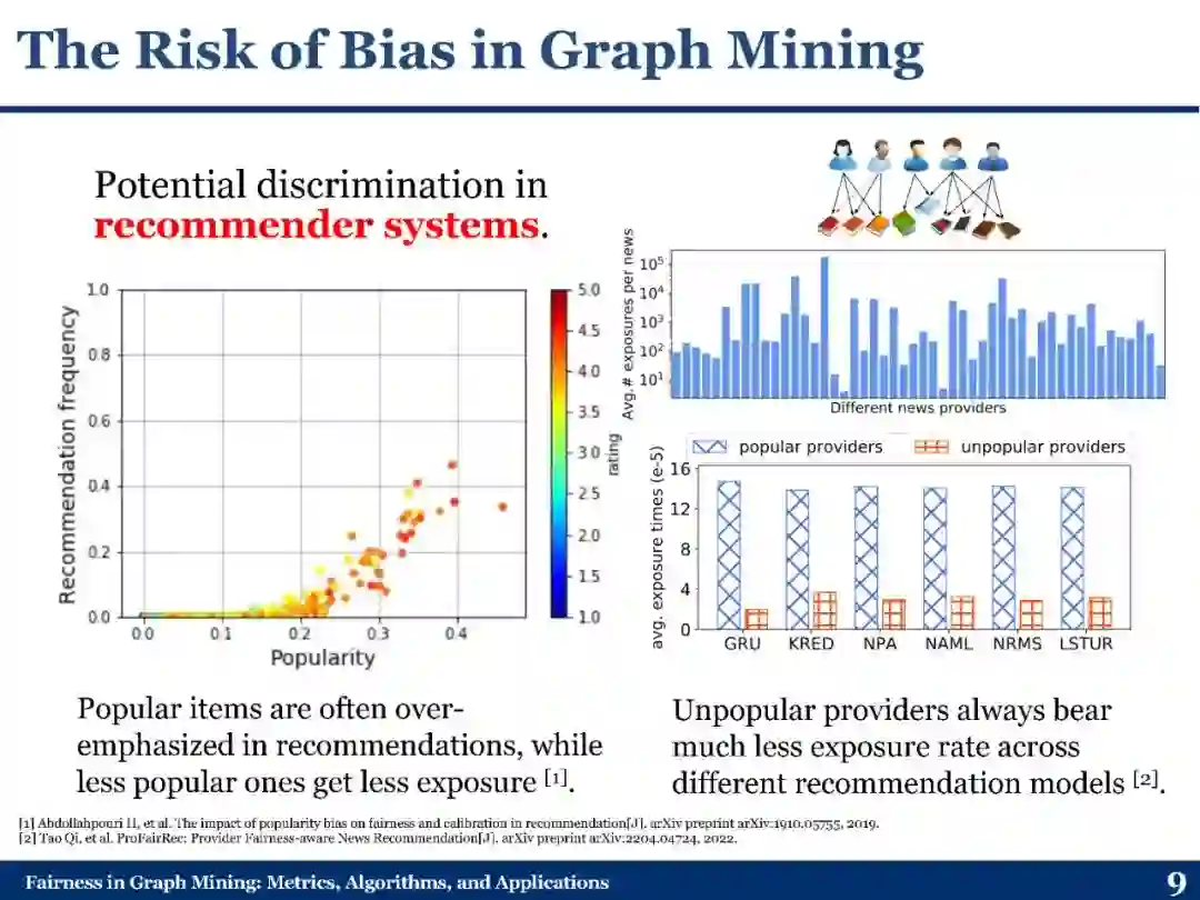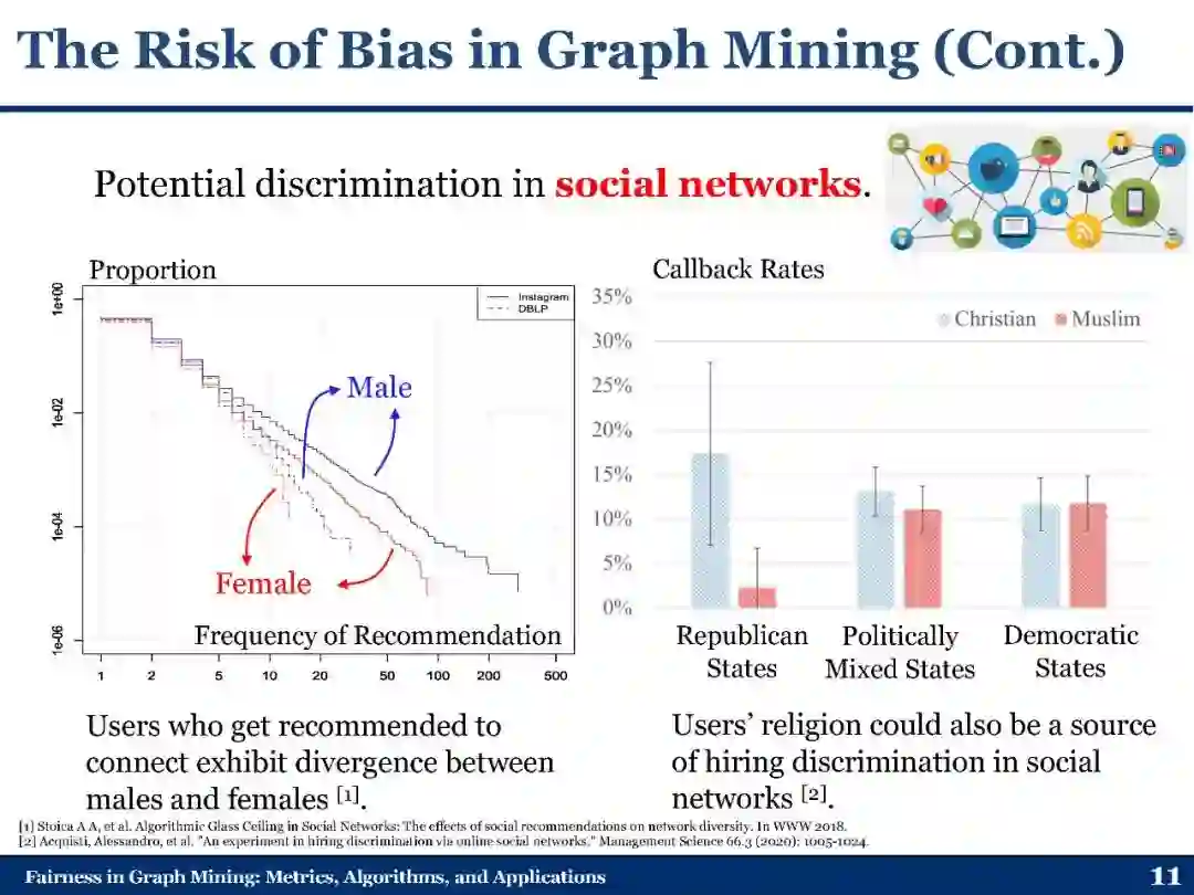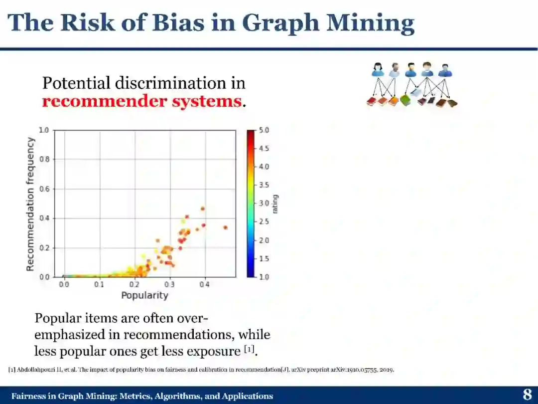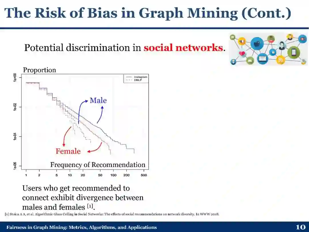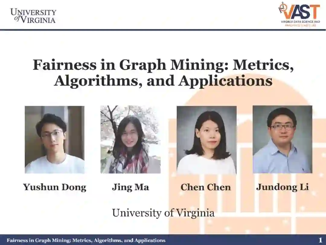 图数据在现实世界的各种应用中无处不在。为了更深入地理解这些图,图挖掘算法多年来发挥了重要作用。然而,大多数图挖掘算法缺乏对公平性的考虑。因此,它们可能对某些人口次群体或个人产生歧视性的结果。这种潜在的歧视导致社会越来越关注如何缓解图挖掘算法中表现出的偏见。本教程全面概述了在测量和减轻图挖掘算法中出现的偏差方面的最新研究进展。首先介绍了几个广泛使用的公平性概念和相应的指标。然后,对现有的去偏置图挖掘算法技术进行了有组织的总结。展示了不同的现实世界应用在去偏后如何受益于这些图挖掘算法。对当前的研究挑战和开放问题提出了见解,以鼓励进一步取得进展。