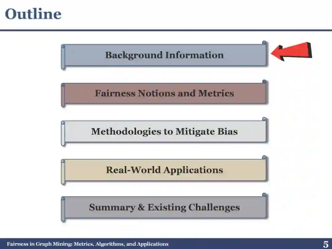 Background and Motivation. * An overview of graph mining tasks that have been studied on algorithmic bias mitigation. * An overview of the applications which benefit from debiased graph mining algorithms.