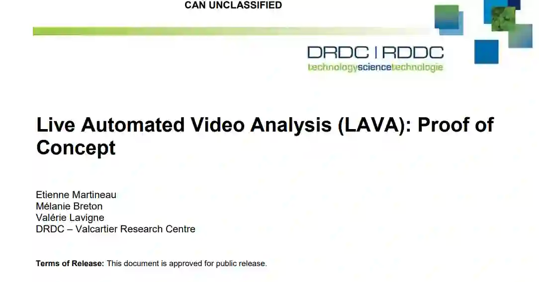 目前,有大量的全动态视频(FMV)档案从未被查看过,而且随着传感器数量的增加,情况越来越糟糕。加拿大国防部(DND)、加拿大其他机构和盟友的问题基本相同:不具备分析来自监控的全动态视频数据的人力。为解决此问题,要求有一种易于扩展的分析能力,这种能力与不断增长的可用视频传感器数量成比例地增长。为了解决这个问题,加拿大国防研究与发展部(DRDC)--瓦尔卡蒂尔研究中心及其赞助者加拿大特种作战部队司令部(CANSOFCOM),已经开始了一项探索性的举措,利用深度学习的最新进展来描述图像和视频内容。这种新兴的能力可以被用来处理FMV,从而为军事分析人员提供支持。本科学报告描述了用于实时FMV分析的自动视频分析(LAVA)概念。它描述了科学家们所面临的工程、创新和研究问题。报告提供了使用机载军事传感器进行的多次真实测试的结果。最后,提出了这项技术的潜在开发途径。