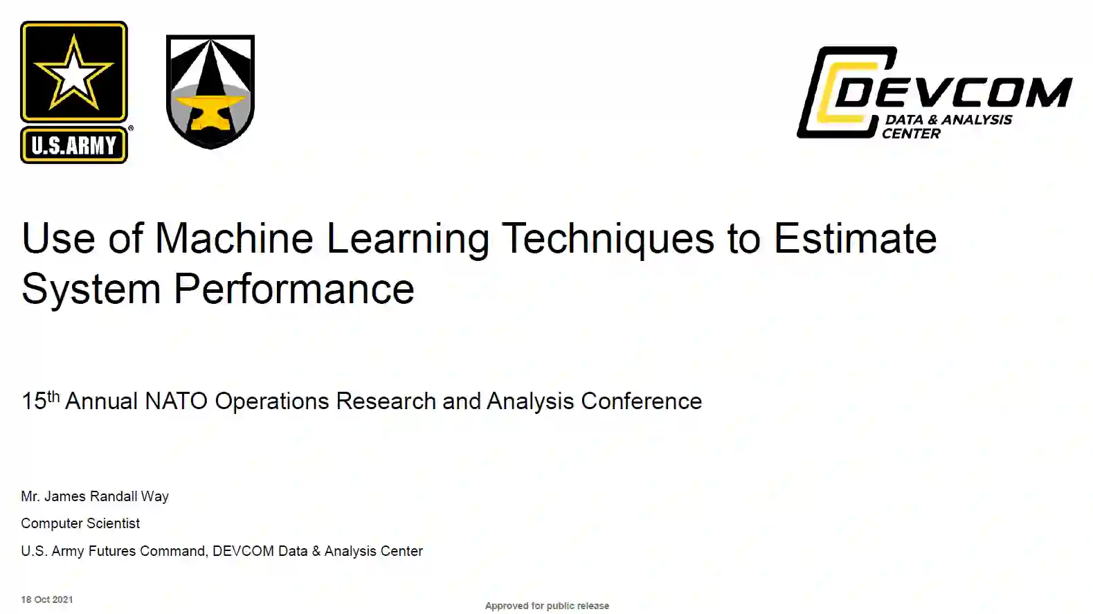 这项研究是在2019财年进行的,是题为 "机器学习技术协助生成项目级性能估计,用于班级和士兵级作战评估 "的研究的一部分。该研究的另一半将在另一份报告中讨论。在这一半的研究中,梯度增强的决策树被用来成功地预测人类主题专家(SMEs)的代理决定。(当所要求的系统没有数据时,一个类似的系统通常被用作代用。) 训练有素的决策树模型可以用来为未来的数据请求建议代理,减少满足这些请求所需的时间并提高所提供数据的准确性。