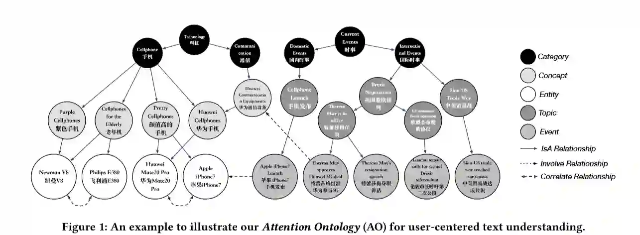 了解在线用户可能要注意的内容是内容推荐和搜索服务的关键。这些服务将受益于实体,概念,事件,主题和类别的高度结构化和网络规模的本体。尽管现有的知识库和分类法包含大量的实体和类别,但我们认为它们无法以在线人群的语言风格发现适当的概念,事件和主题。在语义之间既没有保持逻辑结构化的本体,也没有保持本体。在本文中,我们介绍了GIANT,这是一种以用户为中心,网络规模的结构化本体的构建机制,其中包含大量从各种网络文档和搜索中提取的符合各种用户关注的自然语言短语,并构造各种类型的边缘以维持本体中的层次。GIANT中使用了基于图神经网络的技术,并与各种对比实验进行了比较,评估了所提出的方法。 GIANT制作了Attention Ontology,已将其部署到涉及超过十亿用户的各种腾讯应用程序中。在腾讯QQ浏览器上进行的在线A/ B测试表明,Attention Ontology可以大大提高新闻推荐中的点击率。