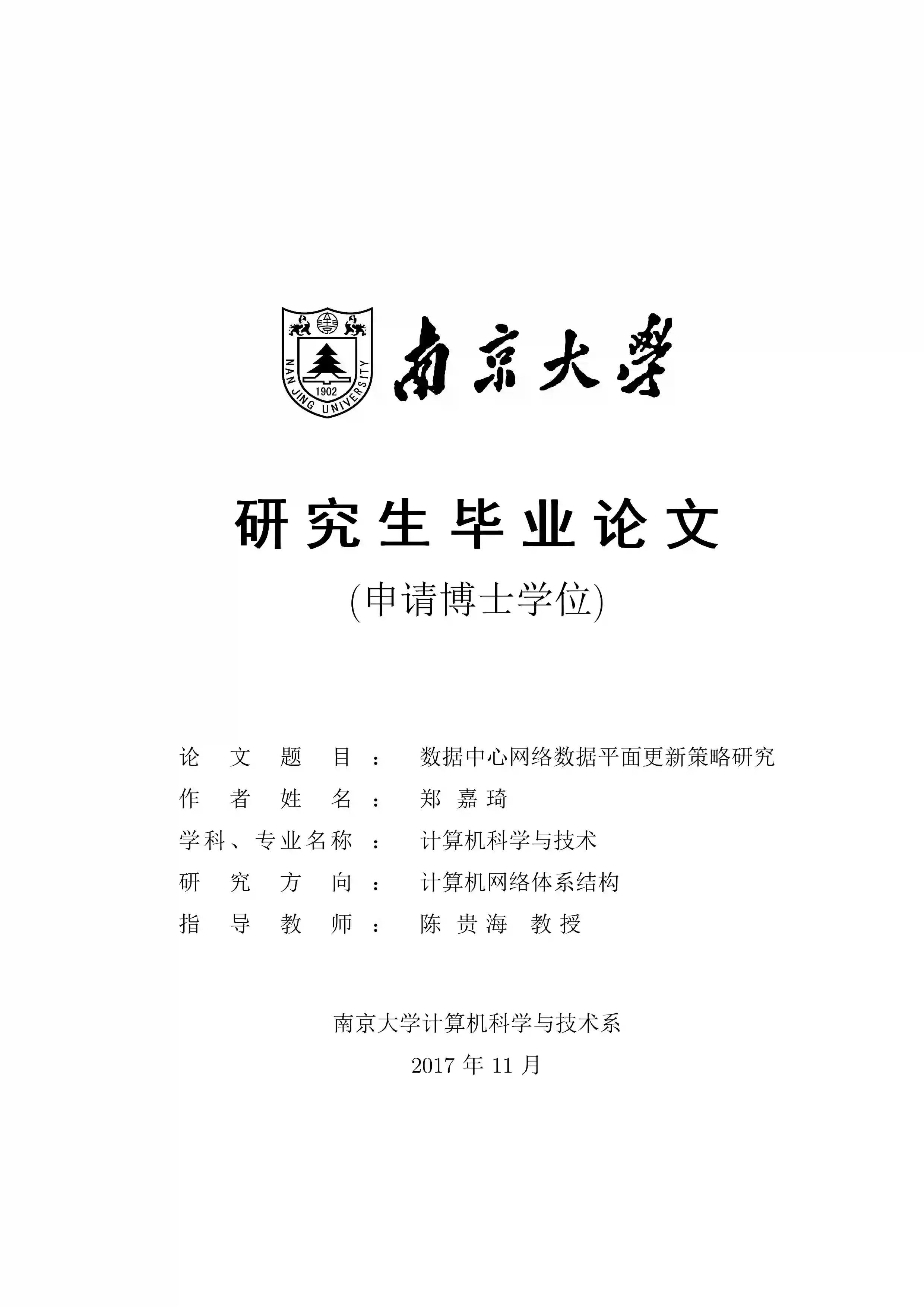 关键词: 数据中心网络; 软件定义网络; 网络更新; 数据平面鲁棒性; 集中式流量工程; Openflow