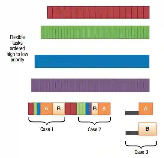 情况2还安排了任务B和A,使DRSI中不存在间隙。但是,如果任务B的松弛的最早限度会达到,以至于它不与前面的灵活任务事件相邻,那么缺口就不可能被关闭。当缺口发生时,缺口的长度会被制成表格,以便在计算调度器效率时使用。调度器的效率是总时间减去间隙的总和除以总时间。