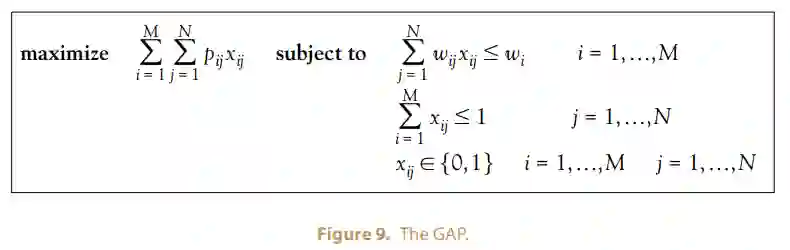 GAP公式如图9所示。轨道的数量为N,传感器的数量为M。一个传感器-轨道对用ij表示。ij对的利润和权重(成本)分别为pij和wij。传感器i的总容量用wi表示。分配向量为xij;如果xij为1,则解决方案中要使用配对ij(即传感器i是轨道j的首选)。典型的解决方案涉及一个动态程序或一个近似算法。然而,弹道导弹跟踪的性质和可用的通信机制进一步制约了这个问题。每次有新的弹道导弹被其中一个传感器探测到或被远程报告时,协调问题必须重新解决。但是,如果传感器轨道分配xij在引入新的轨道后发生变化,那么每个系统的火力控制回路可能会受到不可修复的干扰。换句话说,一旦弹道导弹被分配到一个系统,它就必须留在那里。该算法只能在考虑已知(现存)弹道导弹轨道的当前状态的同时,协调每个新弹道导弹轨道的行动。此外,协调必须发生在跟踪阶段的早期,在这个阶段对弹道导弹的类型和目的地知之甚少。因此,需要一个简单而有效的利润函数,该函数基于从MIL-STD-6016消息集中容易获得的信息,以便可以实施分布式算法。结果是一个具有传感器可用性和确认信息的先入先出的分布式贪婪启发式算法。