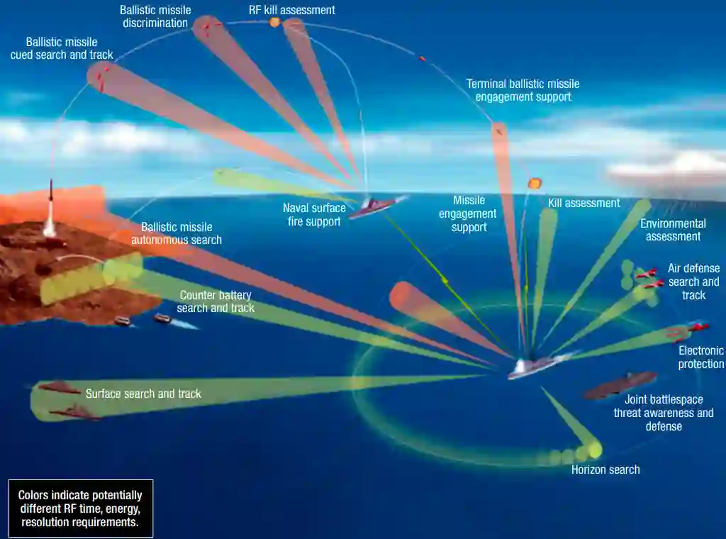 一体化防空反导系统(IAMD)是一套对飞机、巡航导弹和弹道导弹提供分层防御的能力。IAMD的资源管理是管理任何综合防空导弹作战系统或部队的有限资源的一套作战系统和系统的能力。图1显示了一个多任务(包括IAMD)雷达的各种预期能力和功能的例子。