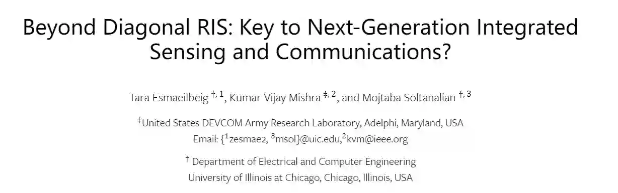 可重构智能表面(RIS)是一种前景广阔的技术,通过在创建智能无线信道时引入前所未有的灵活性和适应性,有可能彻底改变无线系统。最近关于集成传感与通信(ISAC)系统的研究表明,RIS 平台可提高信号质量、覆盖范围和链路容量。在本文中,我们探讨了全连接对角线外 RIS(BD-RIS)在 ISAC 系统中的应用。BD-RIS 允许散射矩阵的非零对角元素,从而引入了额外的自由度,有可能实现进一步的功能和性能提升。特别是,考虑的联合设计目标是,通过利用 BD-RIS 设置中提供的额外自由度,最大化雷达接收器和通信用户的信噪比(SNR)加权和。通过对此类系统的已知变量和辅助变量(潜变量)进行交替优化,这些自由度得以释放。我们的数值结果揭示了在 ISAC 背景下部署 BD-RIS 的优势,以及所提算法的有效性,即雷达和通信用户的信噪比值都提高了几个数量级。