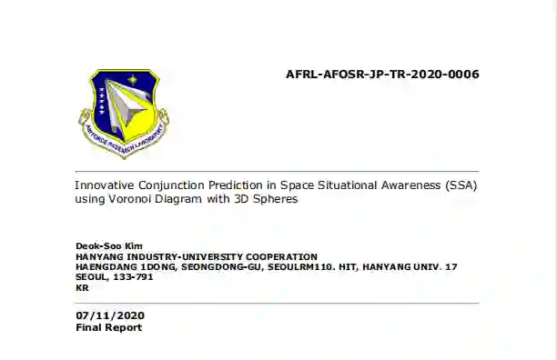 避免碰撞是保证地球空间安全和效率的关键任务之一。这项工作研究了用于避免碰撞的结合体的检测和分辨率,并开发了一种基于三维球体的动态沃洛尼图(DVD)预测结合体的算法。我们已经成功开发、实施并测试了三维球体的DVD算法。然后,我们在DVD算法的基础上,开发并实施了COOP2(连合轨道物体预测和规划器)算法/程序。COOP2显示了一种被证明的数学能力,可以检测到所有的结点,没有任何遗漏的情况。使用从韩国航空航天研究所(KARI)获得的TLE数据测试了COOP2,其中包括以下五颗韩国卫星的轨道运动:KOMPSAT-2、KOMPSAT-3、KOMPSAT-3A和KOMPSAT-5。开发了COOP2的高级功能,在给定检测到的会合时,通过使用存储在COOP-HSTRY文件中的事件历史快速评估备选方案,产生最佳机动计划。用无人机群验证了COOP2算法和程序的正确性和性能。假设飞行一个无人机群,每个无人机在三维空间中遵循自己的路径。在这种情况下,就像驻地空间物体(RSO)一样,能够使用COOP2程序来生成所有无人机的无碰撞飞行路径,这样算法/程序的性能和正确性就可以得到验证和确认。