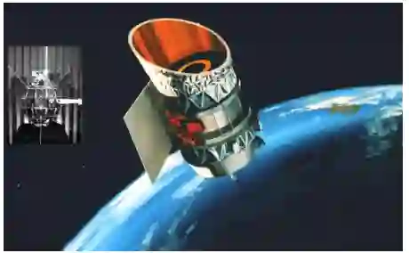 (b)1985年9月13日美国首次成功的反卫星导弹试验的美国目标卫星(Solwind P78-1)。Solwind P78-1是一颗1979年发射的伽马射线光谱学卫星,在525公里处运行[4]。其主要目的是研究太阳风,以及其他事项。一架携带导弹的F-15飞机从爱德华兹空军基地起飞,爬升到11613米(38100英尺),并向Solwind P78-1垂直发射导弹。这次试验产生了285块编入目录的轨道碎片。1块碎片至少到2004年5月还在轨道上[5],但到2008年已经脱离轨道[6]。