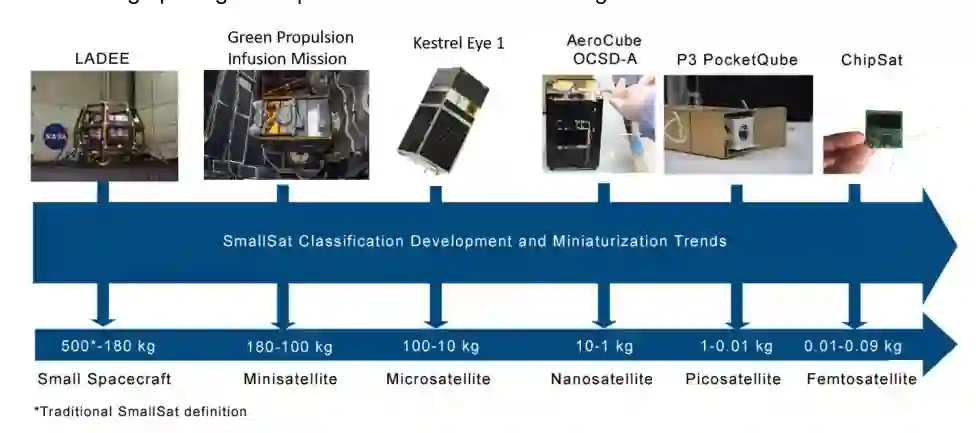 图 1.1: 小型航天器类别概览。资料来源:NASA、SpaceX、Redwire Space 和 Alba Orbital。