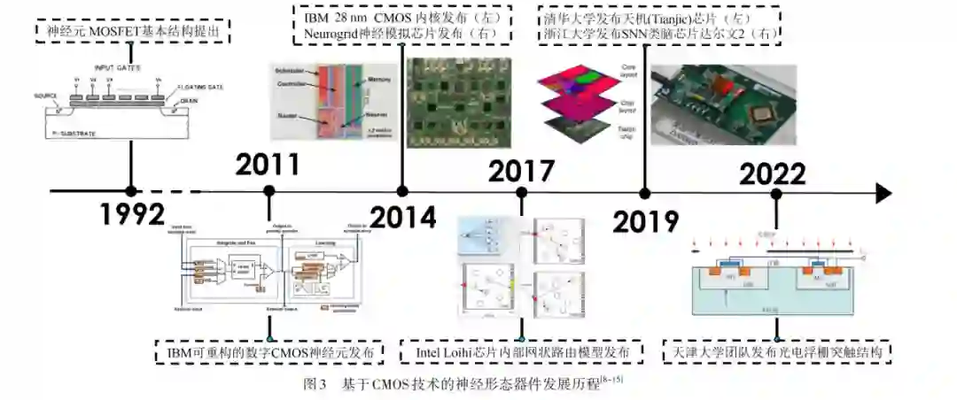 随着大数据时代的到来和人类对人脑系统研究的日渐深入,类脑计算领域的研究取得突破性进展,有希望在根源上打破传统计算机的性能瓶颈.神经突触是对人体脑部进行记忆能力训练和处理数据的重要基础单元,因此开发新材料、新结构,研究基于新型人造材料与光电子器件的神经突触可塑性,对神经形态器件研究和类脑硬件设计的实现都有着重要意义.本文首先指出目前“冯·诺依曼架构”的主要性能瓶颈,引出类脑计算的概念,提出神经形态器件的主要性能优势,并梳理神经形态器件发展历史;然后在忆阻器领域,阐述与分析忆阻类型、忆阻结构与忆阻机理,比较出几种忆阻器的特性,举例说明忆阻器在不同领域的应用;接着以神经形态器件为基础,选取磁性隧道结、新型浮栅管和铁电晶体管,介绍其结构、工作原理与应用;最后总结目前神经形态器件发展的成果和方向,并对行业发展前景进行预测.