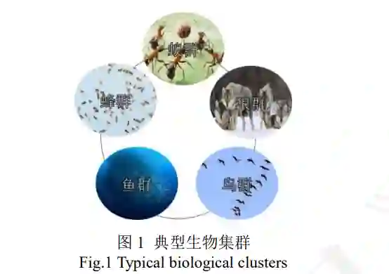 对集群的最初研究源于科学家对昆虫行为的观 察和研究,单个昆虫虽然行为相对简单,完成特定任务的能力相对有限。然而,当多个单体聚集到一 起形成集群后,通过集体协同分工与合作,即可响 应复杂的任务需求,例如蜂群、狼群、蚁群、鸟群 等,如图1所示。事实上,集群作战的方式由来已久, 冷兵器时代的人海战术、骑兵时代的马群战术,二 战时期的狼群战术都是集群作战的典型运用形式, 其核心要义在于创造出局部空间的以量取胜、协同 取胜,通过成体系对抗和低成本作战获胜[5-6]。 无人机蜂群的节点平台类型丰富、研制周期短、 新技术迭代快,具备遂行侦察监视、诱饵欺骗、电 子对抗、饱和攻击等能力,可以大幅度提升作战效 能,而且部分节点的损耗不会显著影响整体的系统功能。
