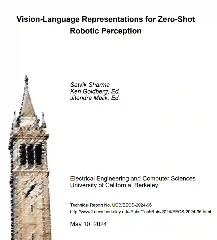 随着机器人系统进入现实世界,创建能够适应真实世界的机器人感知系统的挑战仍然存在。现实世界包含视觉和语义上多样化的环境,这些环境中充满了更加多样化的物体。我们可以利用大型视觉-语言模型(VLMs)来应对这种多样性,这些模型最近在捕捉现实世界规模的语义方面显示出了前景,因为它们是在互联网规模的数据上预训练的。我们希望依赖这些VLMs而无需进行额外的环境特定数据收集,因为这对许多机器人领域来说可能是昂贵的。因此,我们寻求将VLMs整合到机器人感知流程中,以便在不同任务中开箱即用或零样本使用。我们引入了两种利用VLMs进行零样本机器人任务的方法,分别用于遮挡物体搜索和抓取,即语义机械搜索(SMS)和面向任务抓取的语言嵌入辐射场(LERF-TOGO)。SMS除了使用VLMs外,还利用LLMs来更好地在搜索时语义上推理视觉遮挡的物体。通过将语义理解嵌入搜索过程,SMS提高了在模拟和现实世界环境中定位物体的效率。另一方面,LERF-TOGO创建了一个从VLMs派生的3D视觉-语言场,用于根据自然语言输入执行精确的物体部分抓取。这种方法在物理试验中显示出高准确性和适应性,有效地抓取了各种物体上指定的部分。我们最后总结了这两项工作的局限性和可能的未来发展方向。