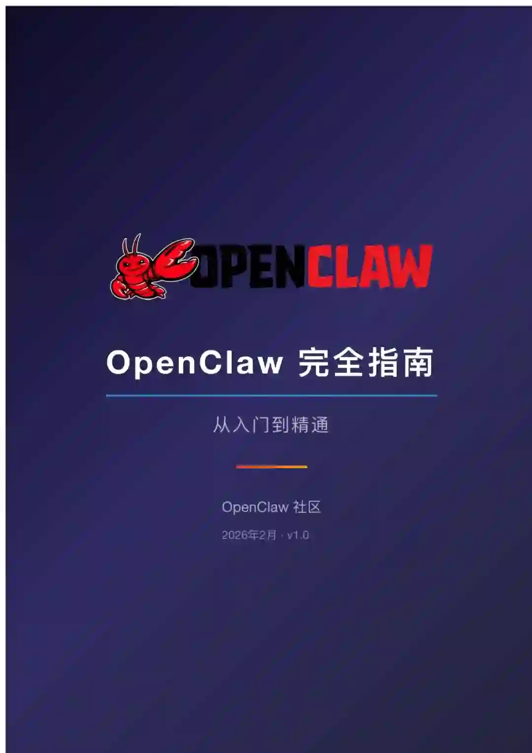 OpenClaw是一个革命性的开源 AI 智能体 Gateway 网关,它让你可以在本地部署AI助手,访问本地文件,通过多个平台(飞书、企微、QQ等)随时使用。本书将带你从零开始,全面掌握 OpenClaw 的使用方法和高级技巧。