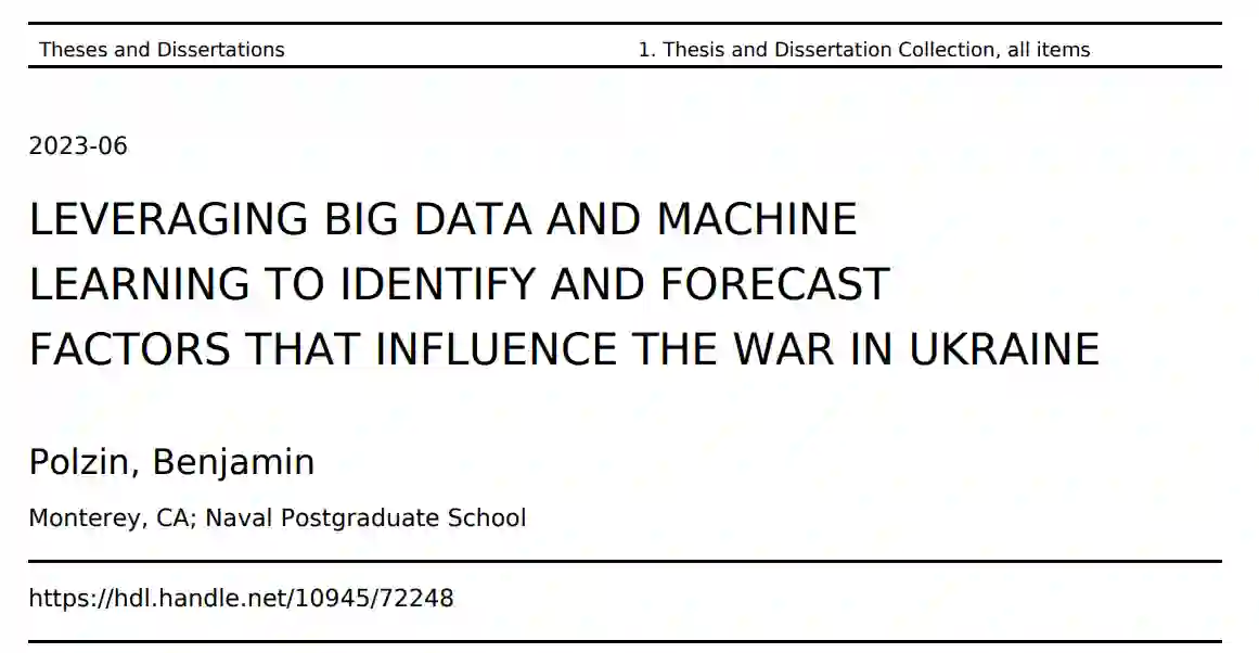 本研究旨在利用全球事件、语言和语调数据库(GDELT)数据集来预测影响乌克兰战争的重要因素,并将使用提取的数据和机器学习技术来开发预测模型。该项目旨在实现两个目标。首先,提供一种从大数据集合中自动提取和预处理相关事件数据的方法。其次,将不同的机器学习模型应用于提取的数据,以预测重要因素,从而识别持续冲突中的事件趋势。