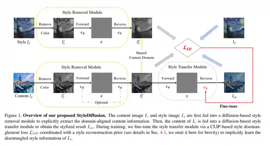 内容与风格(C-S)的解耦是风格转移中的基本问题和关键挑战。基于明确的定义(例如,Gram矩阵)或隐式学习(例如,GANs)的现有方法既不可解释也不易于控制,导致了交织的表示和不太令人满意的结果。在这篇论文中,我们提出了一种新的C-S解耦风格转移框架,不使用之前的假设。关键的洞见是明确地提取内容信息并隐式地学习互补的风格信息,从而产生可解释和可控的C-S解耦和风格转移。我们引入了一个简单而有效的基于CLIP的风格解耦损失,与风格重建先验协同工作,以在CLIP图像空间中解耦C-S。通过进一步利用扩散模型的强大风格去除和生成能力,我们的框架比现有的技术获得了更好的结果,并具有灵活的C-S解耦和权衡控制。我们的工作为风格转移中的C-S解耦提供了新的洞见,并展示了扩散模型在学习良好解耦的C-S特征方面的潜力。