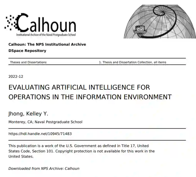 本论文包括六个主要部分(第二章至第七章)。第二章建立了基础,首先解释了人工智能和OIE的关键概念和定义。该章还讨论了从业者在计划、执行和评估OIE时面临的挑战,并确定了可以解决其中一些挑战的人工智能技术。第三章阐述了信任在人机协作中的关键作用,它影响了人工智能在军事行动中的有效使用。第四章深入研究了技术接受和采用理论,以确定影响OIE单位内人工智能技术采用性的重要因素。第五章评估了现有的框架,这些框架有助于提高人工智能系统的透明度,并可由SOF利用这些框架来评估技术。进行了定性分析,以确定通过开源研究发现的50个模型卡的共同主题。第四章和第五章的发现被用来建立第六章提出的从业人员评价框架(PEF)。在第七章中,该框架被用来评估Pulse--一个目前被OIE单位采用的人工智能工具。第八章最后提出了对未来研究的总体建议和意见。