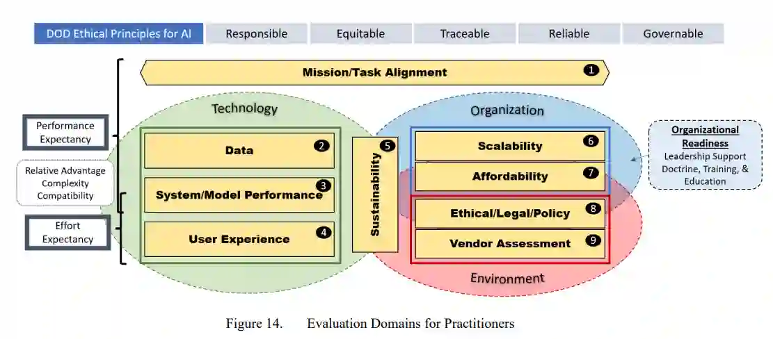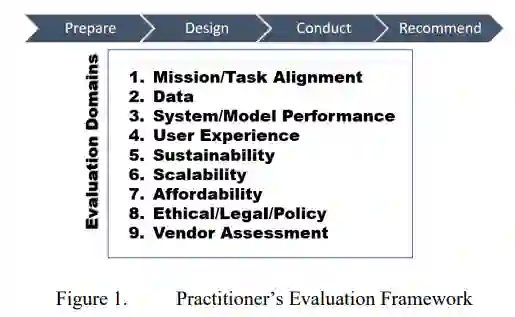 人工智能(AI)的最新进展预示着一个信息周期加速和技术扩散加剧的未来。随着人工智能的应用变得越来越普遍和复杂,特种作战部队(SOF)面临着辨别哪些工具能最有效地满足作战需要并在信息环境中产生优势的挑战。然而,SOF目前缺乏一个以终端用户为中心的评估框架,它可以帮助信息从业者确定人工智能工具的操作价值。本论文提出了一个从业人员的评估框架(PEF),以解决SOF应该如何评估人工智能技术以在信息环境中开展行动(OIE)的问题。PEF通过信息从业者的角度来评估人工智能技术,他们熟悉任务、行动要求和OIE过程,但对人工智能的技术知识有限甚至没有。PEF包括一个四阶段的方法--准备、设计、执行、推荐--评估九个评价领域:任务的一致性;数据;系统/模型性能;用户体验;可持续性;可扩展性;可负担性;道德、法律和政策考虑;以及供应商评估。通过一个更加结构化、方法化的方法来评估人工智能,PEF使SOF能够识别、评估和优先考虑OIE的人工智能工具。