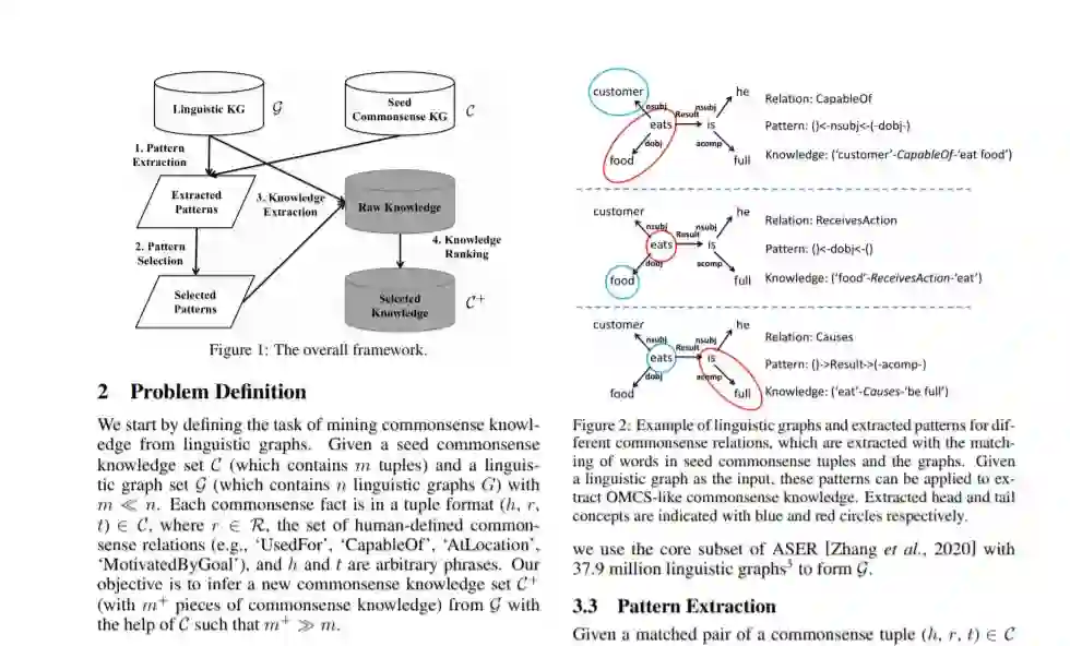常识知识的获取是人工智能的关键问题。传统的获取常识的方法通常需要耗费大量人力和财力进行注释,而这在大规模的情况下是不可行的。本文探讨了一种从语言图形中挖掘常识性知识的实用方法,目的是将通过语言模式获得的廉价知识转化为昂贵的常识性知识。其结果是将大规模的选择性偏好知识资源ASER [Zhang et al., 2020]转换为与ConceptNet [Liu and Singh, 2004]具有相同表示的TransOMCS,但要大两个数量级。实验结果表明,该方法在量、新颖性、质量等方面都具有从语言知识到常识的可转移性和有效性。TransOMCS可通过以下网址访问