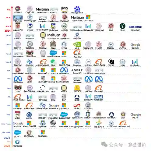 1 介绍多模态大型语言模型(MM-LLMs)在过去一年取得了显著进步,通过优化模态对齐和与人类意图对齐,增强了现成的单模态基础模型(LLMs)以支持各种MM任务。本文对MM-LLMs进行了全面综述,包括模型架构和训练流程的概述,以及122个最新进展的MM-LLM分类系统。本文还介绍了输出投影器在机器翻译中的作用,并讨论了模式生成器、训练管道、SOTAMM-LLM以及未来发展方向。MM-LLMs具有较高的性能,未来发展方向包括扩展模型模式、多样化LLM、提高MM生成能力和开发更具挑战性的基准。文章全面探讨了现代机器学习模型MM-LLMs的最新进展,关注了MM-LLMs在微调和幻觉缓解等方面的挑战,并提出了一些建议。MM-LLMs的时间表如图1所示。