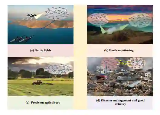 有用的 UAV 到 UAV 通信:最后但同样重要的是,类似于地面设备到设备 (D2D) 通信,UAV 到 UAV 通信可以广泛用于群内空中无线网络中,用于数据传输、中继、自主飞行、聚集等[5]。因此,它将带来能源效率、频谱效率和扩大空中覆盖范围的好处。此外,可以减轻回程链路的负担,从而降低传输延迟。