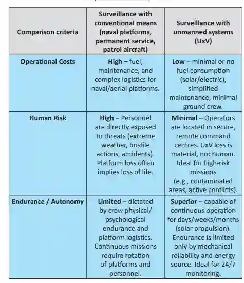 鉴于黑海地区日益增长的威胁,保护关键海事基础设施是罗马尼亚的一项战略优先事项。本研究旨在分析无人系统在关键海事基础设施的监视与监控任务中的潜力,这对经济和能源安全至关重要。为此,将根据海床安全概念的普及,识别可用于海上安全任务,特别是海床安全任务的平台类型。本研究面临的挑战在于,通过将海军行动与用于自动处理、预测性分析和实时响应的人工智能解决方案相结合,寻找能够产生协同效应的海军行动整合方案。研究认识到在法律法规、网络安全、互操作性和人力资源方面的主要挑战,承认研究范围存在一定局限,但仍为海上安全与关键基础设施的发展提供了一系列解决方案、建议和未来方向。