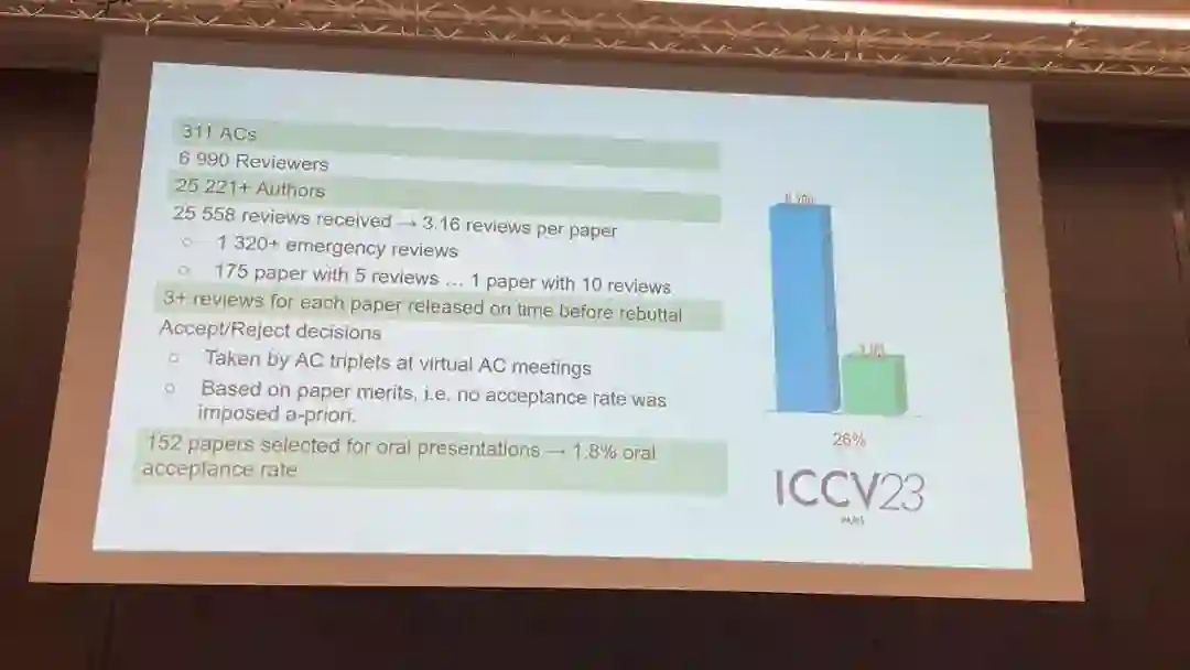 2023年度计算机视觉国际大会(International Conference on Computer Vision, ICCV)10月2日至6日在法国巴黎举行。ICCV是计算机领域世界顶级的学术会议之一,与CVPR、ECCV并称计算机视觉三大顶会,每两年举办一次。会议上将颁发最佳论文奖(Marr Prize)和最佳论文提名奖。今年7月,ICCV公布本届大会论文收录结果,共计2160篇论文入选。在开源社区HuggingFace已展示的1142篇入选论文中,50篇论文涉及的研究成果基于OpenMMLab系算法库产生。