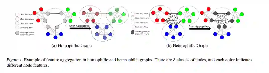 GNNs的成功,尤其是在节点级任务上的成功,通常被认为是基于同质性原则。同质性是社会学和进化生物学中的一个概念,指出具有相似特征的个体更容易相互交流和建立联系。在图表示学习中,它描述了连接的节点更可能具有相似标签或属性的网络。同质性结构为原始节点特征的聚合提供了额外的有用信息,这种关系归纳偏差被认为是GNNs在各种任务上优于传统NNs的主要原因。