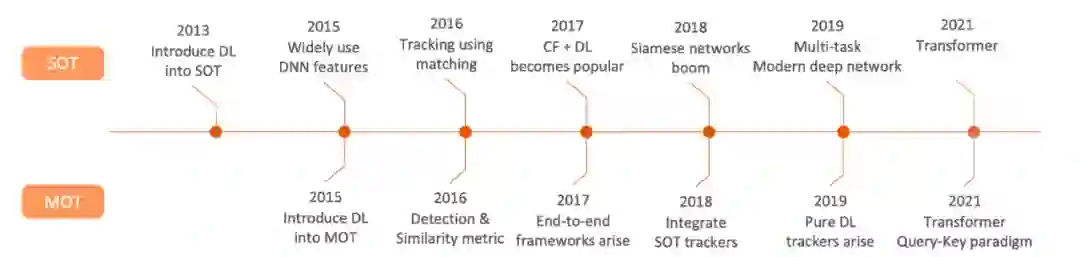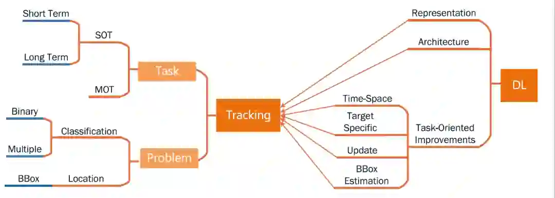 图4 视觉跟踪任务与深度学习的关系、研究发展时间线