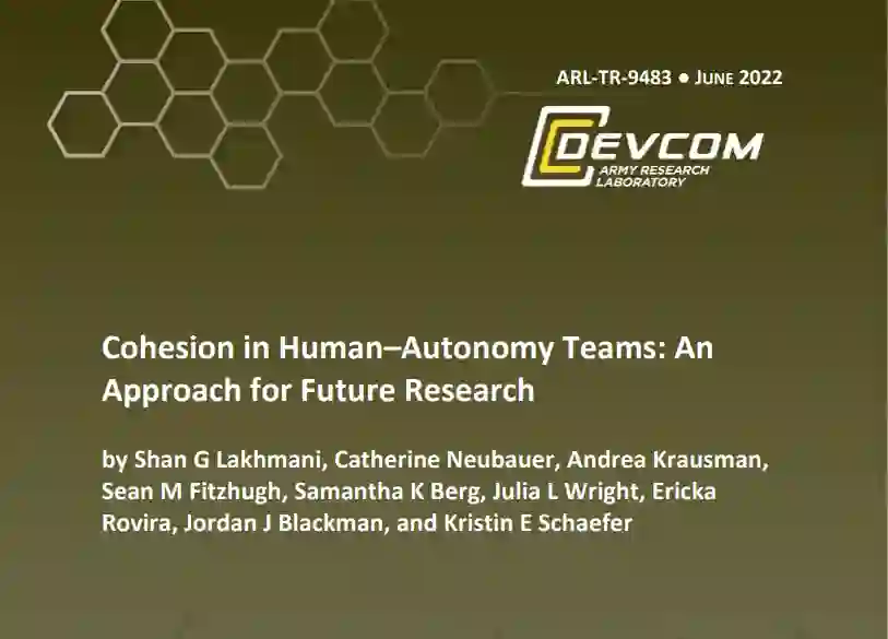 内聚力是团队的一个重要属性,它可以影响个人队友和团队成果。然而,在包括自主系统作为队友的团队中,内聚力是一个未被充分探索的话题。我们研究了关于人类团队内聚力的现有文献,然后在此基础上推进对人类-自主系统团队的内聚力的理解,包括相似性和差异性。我们描述了团队的内聚力,各种定义、因素、维度以及相关的好处和坏处。我们讨论了当团队包括一个自主性的队友时,该元素可能会受到怎样的影响,并进行了逐一描述。最后,我们确定了可能与内聚力有关的人类-自主性互动的具体因素,然后阐述了对推进有效的人类-自主性团队的科学至关重要的未来研究问题。