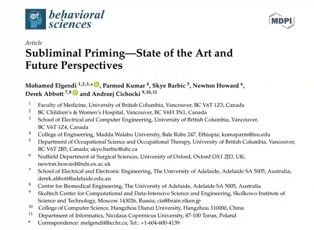 阈下启动是复杂[8]。在概述中,讨论了阈下启动的概念模型和当代研究,对在广告、营销、说服/态度改变和其他领域使用这些发现的经验研究人员和应用心理学家有启示。从心理学和生理学的角度,人们对阈下启动的深度和有效性越来越感兴趣。实时理解和预测被试在阈下启动时的心理状态,理论上可以提高阈下启动效果的影响。生理信号,如脑电图(EEGs)和基于眼睛的测量(眼动跟踪),可以用来测量心理反应。当前关于阈下启动的研究,包括心理机制和生理机制,可分为以下五类,构成了本综述的主要部分。