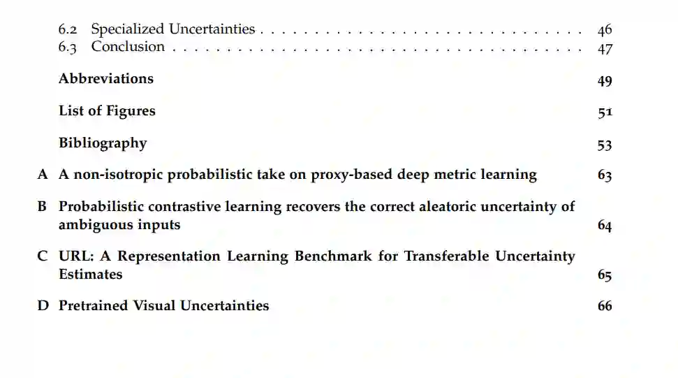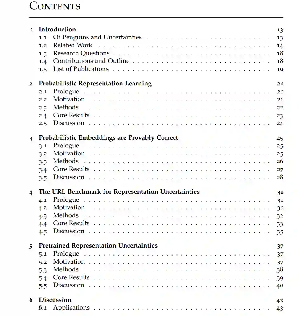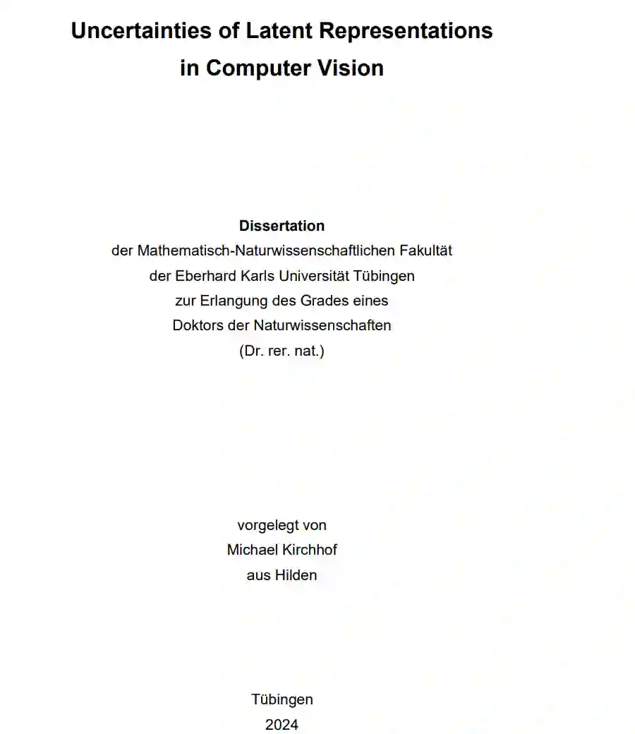 不确定性量化是可信机器学习的重要支柱之一。它能够在输入不安全的情况下做出安全反应,例如仅在机器学习模型检测到足够证据时进行预测,舍弃异常数据,或在可能出现错误时发出警告。这在医疗图像分类或自动驾驶汽车等安全关键领域尤为重要。尽管提出了许多不确定性量化方法,并在性能基准测试中取得了越来越高的分数,但在实际应用中,不确定性估计往往被忽视。许多机器学习项目从预训练的潜在表示开始,而这些表示通常不包含不确定性估计。实践者需要自行训练这些不确定性,这既困难又资源密集。本论文通过将不确定性添加到预训练计算机视觉模型的潜在表示向量中,使不确定性估计变得易于获取。除了提出基于概率论和决策理论的方法,如蒙特卡罗信息对比损失(MCInfoNCE)和损失预测外,我们还探讨了理论和实证问题。我们证明了这些关于不可观察的潜在表示的不确定性确实是可以证明其正确性的。我们还提供了一个不确定性感知表示学习(URL)基准,以将这些不可观察的量与可观察的真实值进行比较。最后,我们将研究成果编译为在大规模计算机视觉模型上预训练的轻量级表示不确定性,这些不确定性可以以零样本的方式转移到未见过的数据集上。我们的研究成果不仅推进了当前对潜在变量不确定性理论的理解,还为未来领域内外的研究人员提供了不确定性量化的便利。作为可下载的起点,我们的预训练表示不确定性使得一系列新颖的实际任务得以实现,从而促进了简单但可信的机器学习的开展。