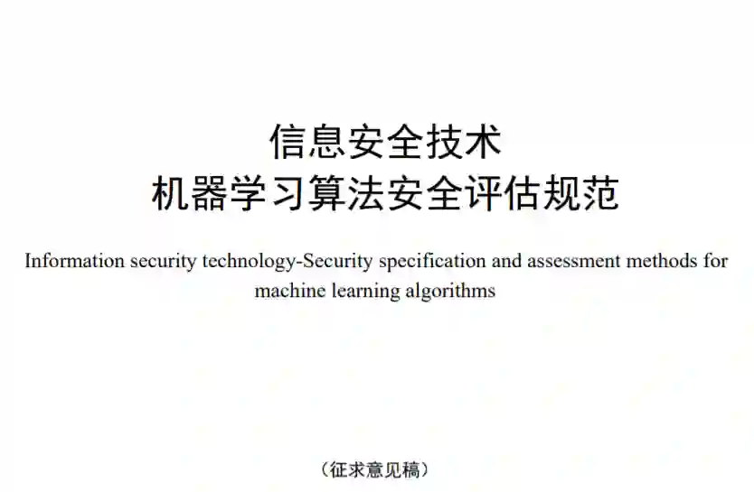 《信息安全技术 机器学习算法安全评估规范》国家标准,本文件本文件规定了机器学习算法在设计开发、验证测试、部署运行、维护升级、退役下线等阶段的安全 要求和证实方法,以及机器学习算法的安全评估实施。本文件适用于对机器学习系统中的算法进行安全评估,也适用于机器学习系统开发者和运营者在算 法开发运营过程中进行自评估和改进安全措施。