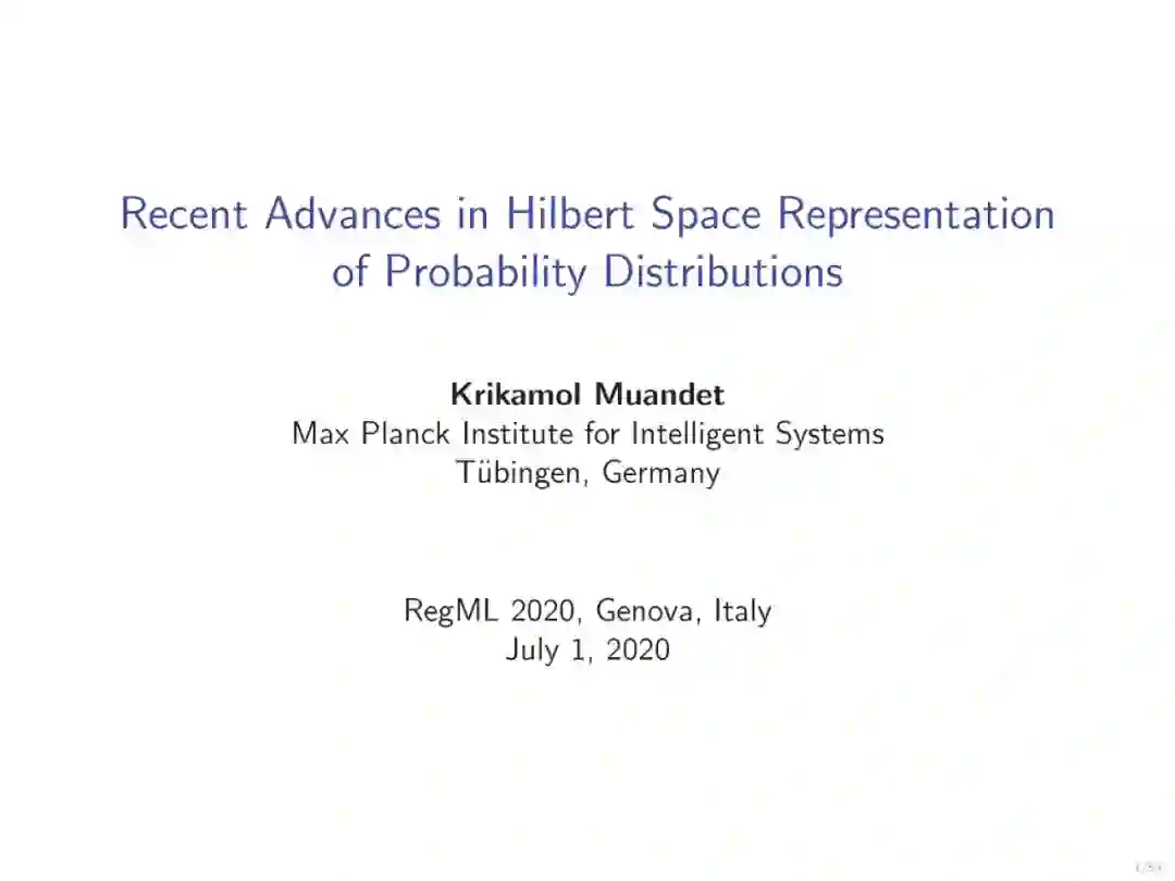 本文推荐来自Krikamol Muandet博士讲述《概率分布的希尔伯特空间表示》,136页ppt系统性讲述了希尔伯特空间表示基础知识和最新进展,非常干货。